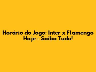 Horário Do Jogo: Inter X Flamengo Hoje - Saiba Tudo!