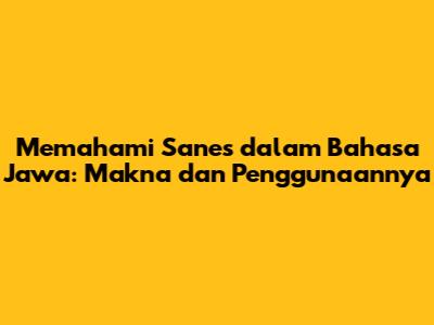 Memahami 'Sanes' Dalam Bahasa Jawa: Makna Dan Penggunaannya