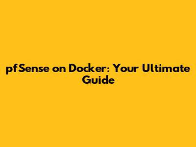 PfSense On Docker: Your Ultimate Guide