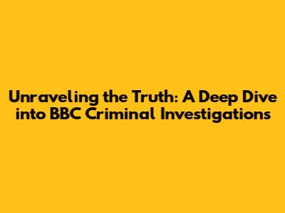 Unraveling The Truth: A Deep Dive Into BBC Criminal Investigations